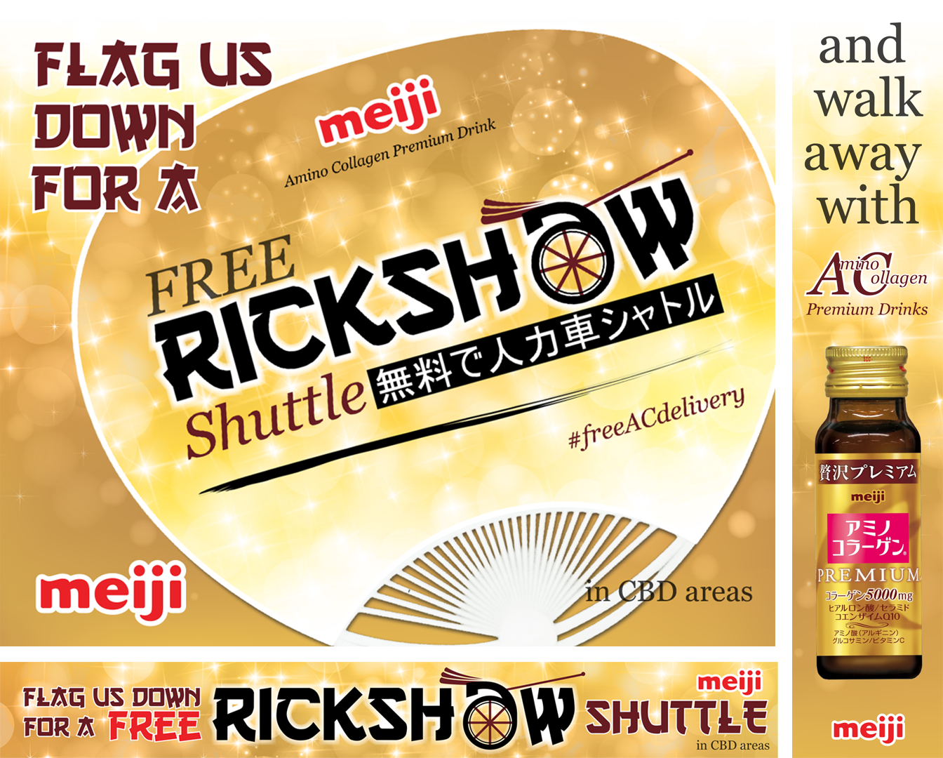 Activation with 4 rickshaws to recall the authenticity of this Japanese brand to the audience. During the 2-hour lunchtime, the fleet traveled around to 6 different “eatery” locations within CBD to offer free rides during lunch break, in order to promote the product’s proposition of “delivering to your doorstep”.